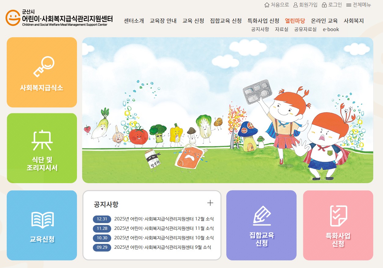 군산시 어린이 급식관리지원센터 공식 홈페이지 바로가기