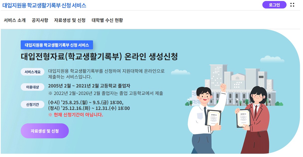 대입 전형 자료 온라인 생성 신청 시스템(apply.neis.go.kr) 공식 홈페이지 바로가기