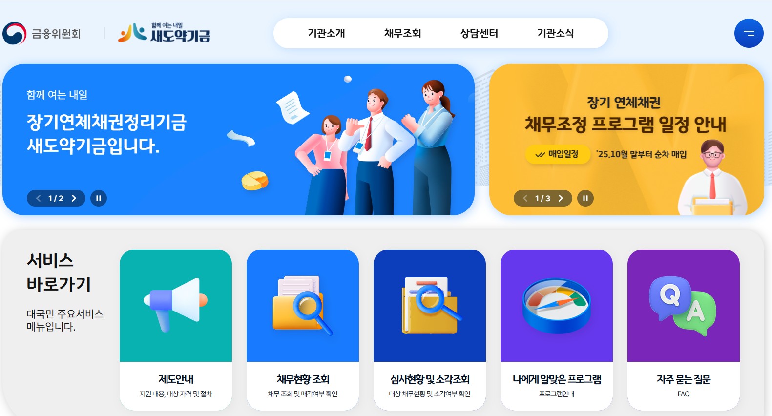 새도약기금은 채무자의 경제적 재기 기회를 지원하는 제도로, 채무 현황 확인과 프로그램 안내 등을 공식 홈페이지에서 편리하게 이용할 수 있습니다. 방문하여 필요한 정보를 확인하시기 바랍니다.