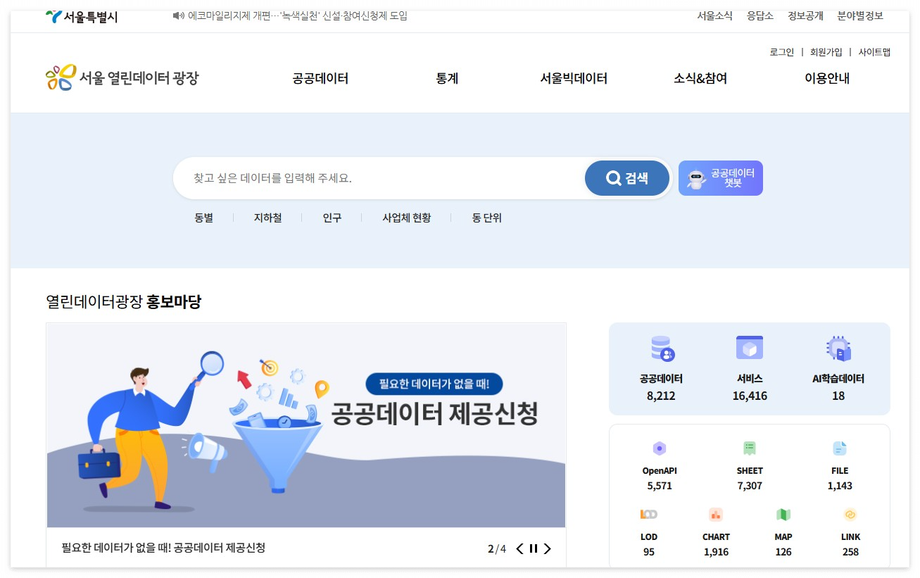 서울 열린데이터 광장(data.seoul.go.kr)공식 홈페이지 바로가기
