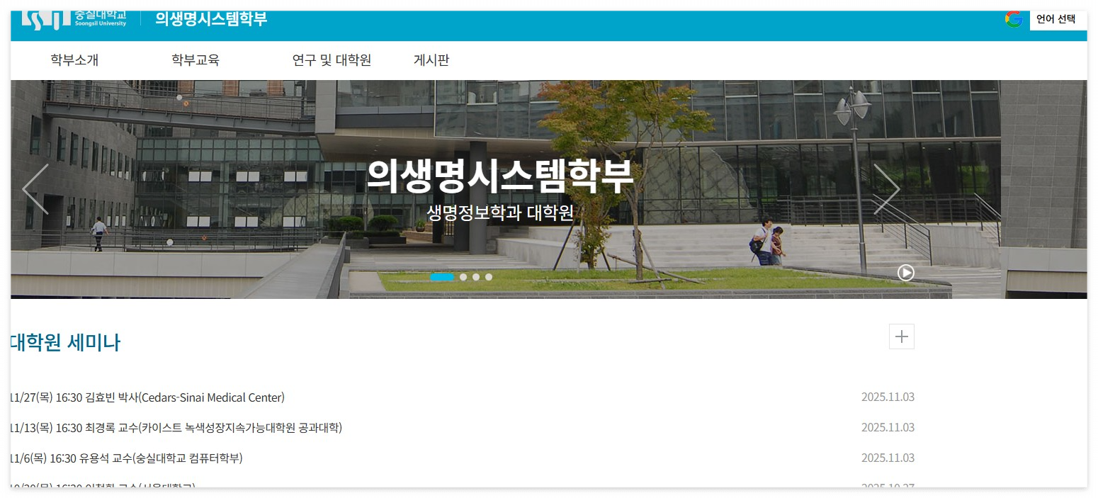 숭실대 의생명 시스템 학부(bioinfo.ssu.ac.kr)공식 홈페이지 바로가기