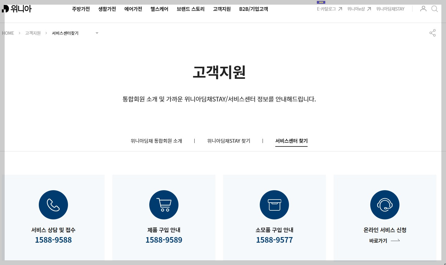 https://www.winiaaid.com/main - 서비스센터/판매점 찾기(지점 위치·연락처 확인)